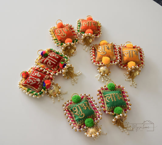 Reversible 7" Hanging Shubh Labh Red patola + Yellow Banarasi