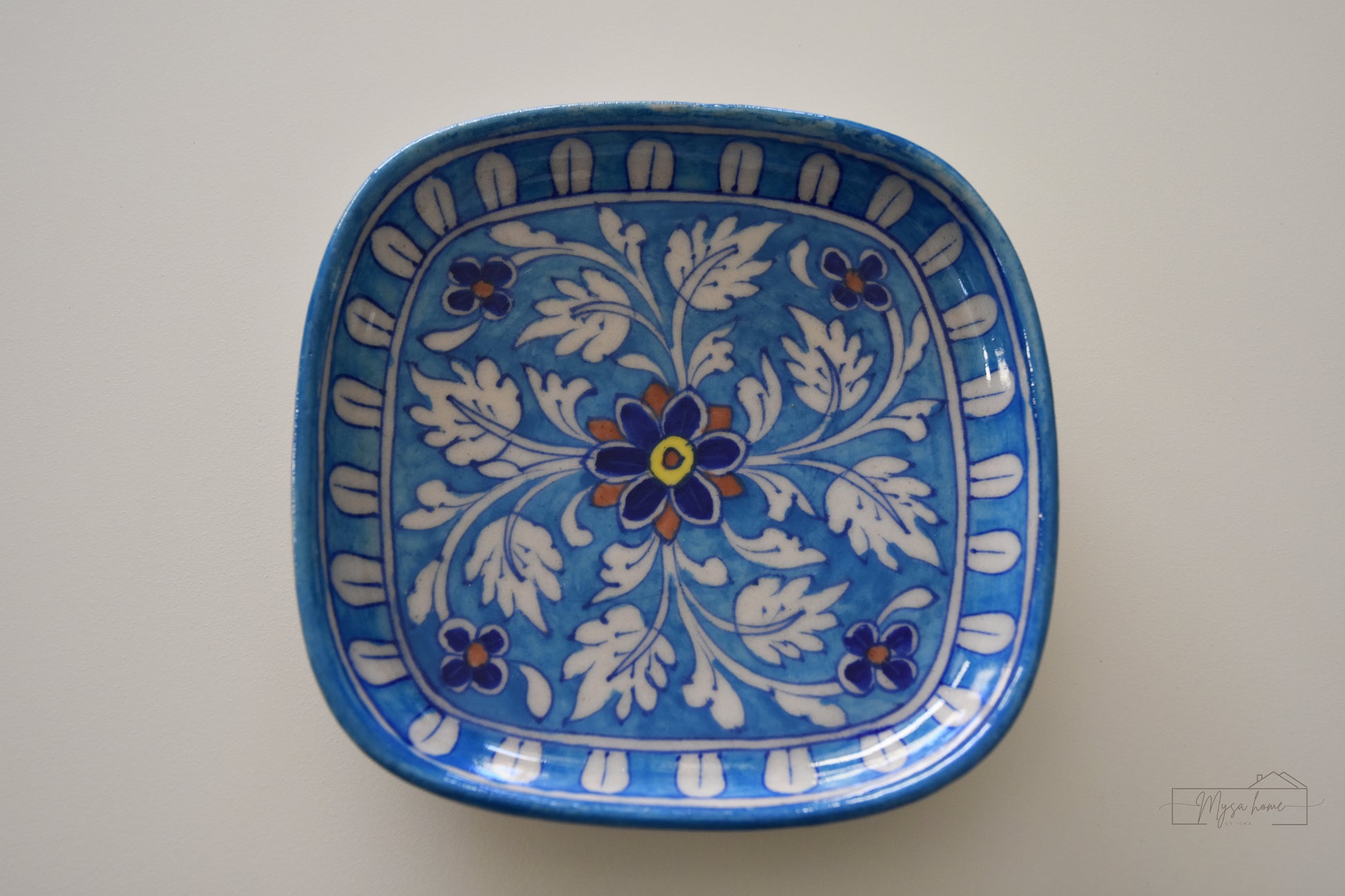 Our handcrafted Blue Pottery tray adds a touch of elegance to your home and makes a meaningful gift. It can be used as a trinket tray, beautiful accent, a tray for oil cruets, or even to serve dry food.