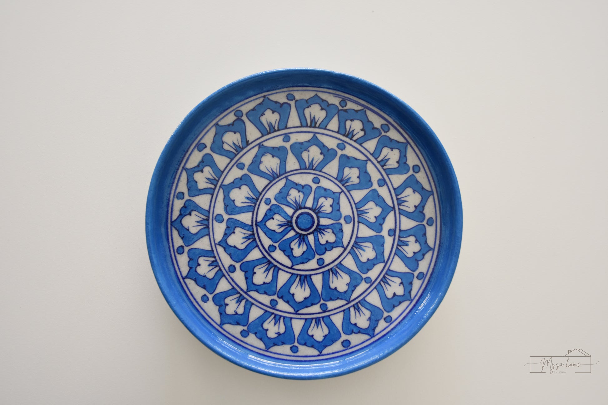 Material: Traditional Blue Pottery Dough (quartz stone powder, powdered glass, borax, gum, Multani mitti). Dimension: 8.5"round approximately.