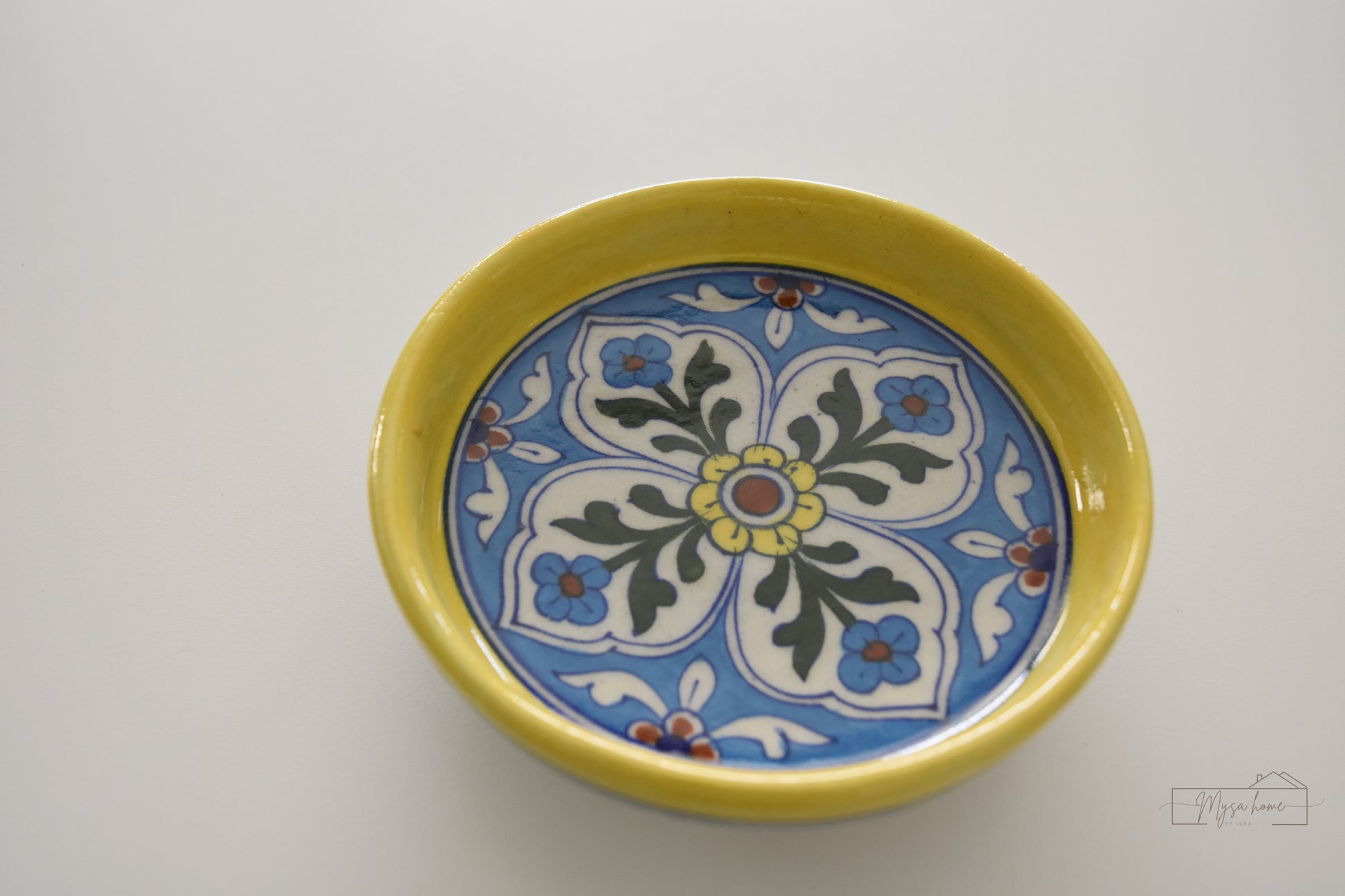 Blue Pottery Tray Round 6" - Yellow