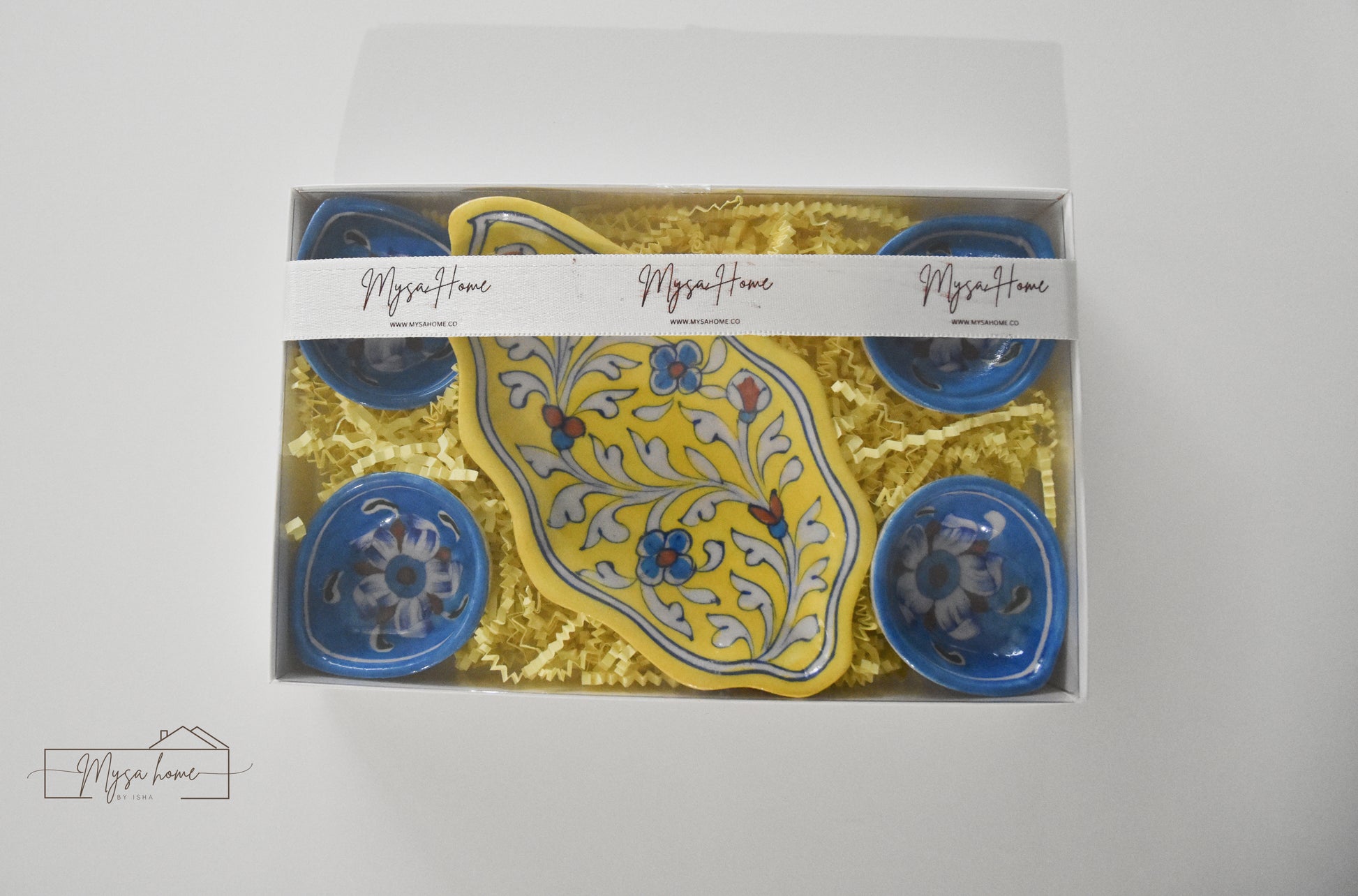 A hamper that brings tradition and elegance together. Handmade artisanal blue pottery diyas to light up your rituals and celebrations in the most unique way.