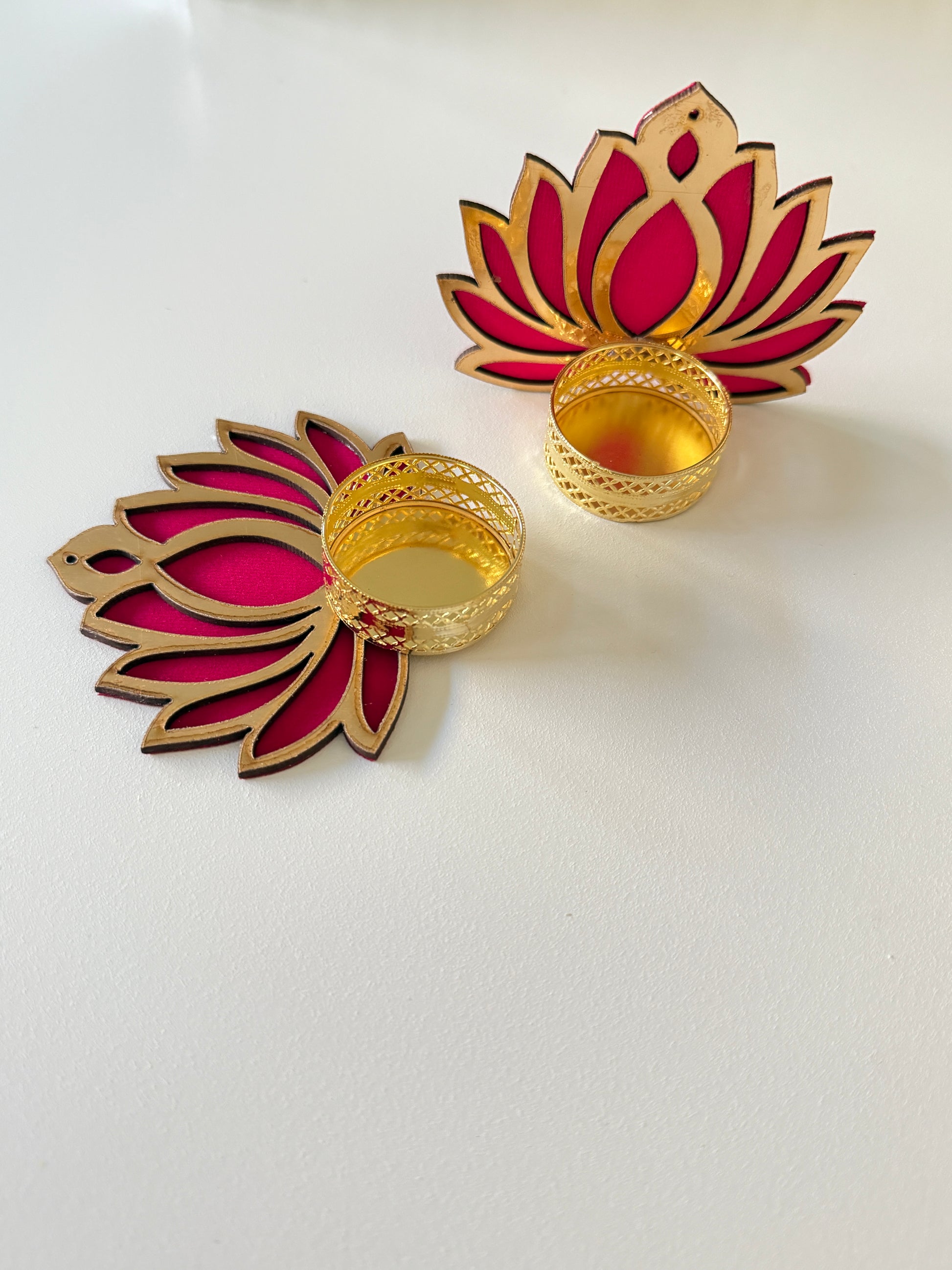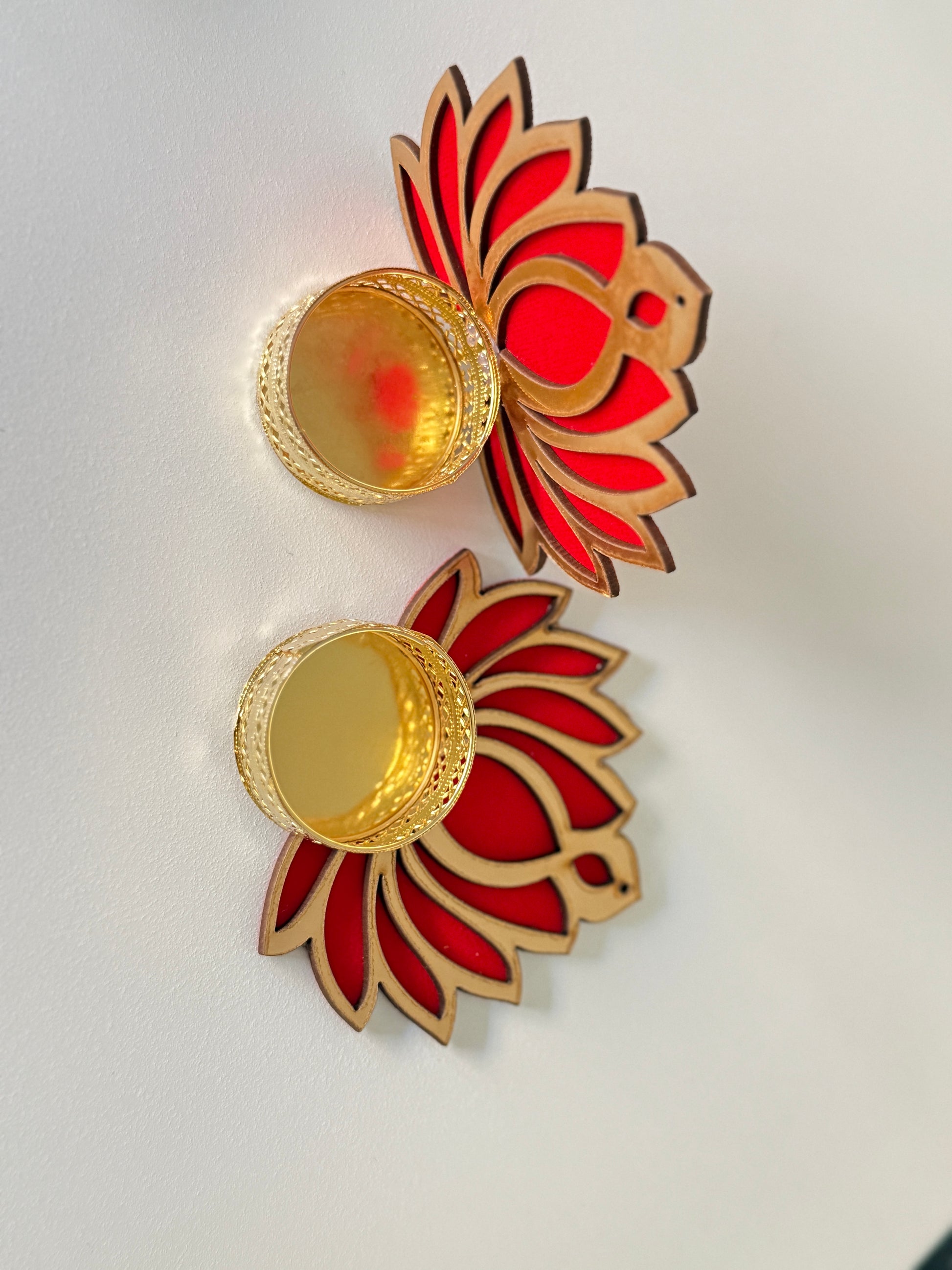 Illuminate your Puja and celebrations with our exquisite lotus Tea Light. Choose from the option of Flat or standing Tea lights. The Standing tea light can also be hung with a thread from the top Hole. Place a tea light candle inside, and watch as the soft glow highlights the intricate patterns and adds warmth to your home. Add this stunning piece to your Diwali decor, puja room, or as a thoughtful gift for loved ones.